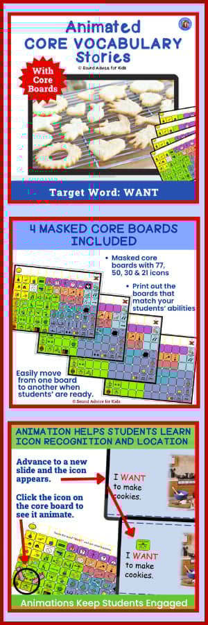 Perfect for teletherapy and distance learning! This animated, interactive story builds language skills in nonverbal students and AAC users through repeated modeling and motor memory development.